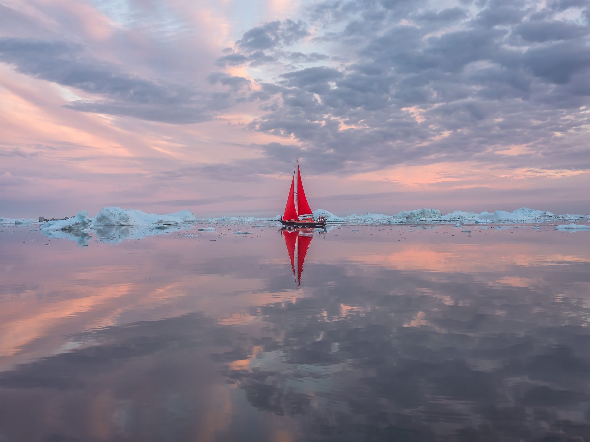 Ilulissat Icefjord in Greenland. Handheld. With very calm water.